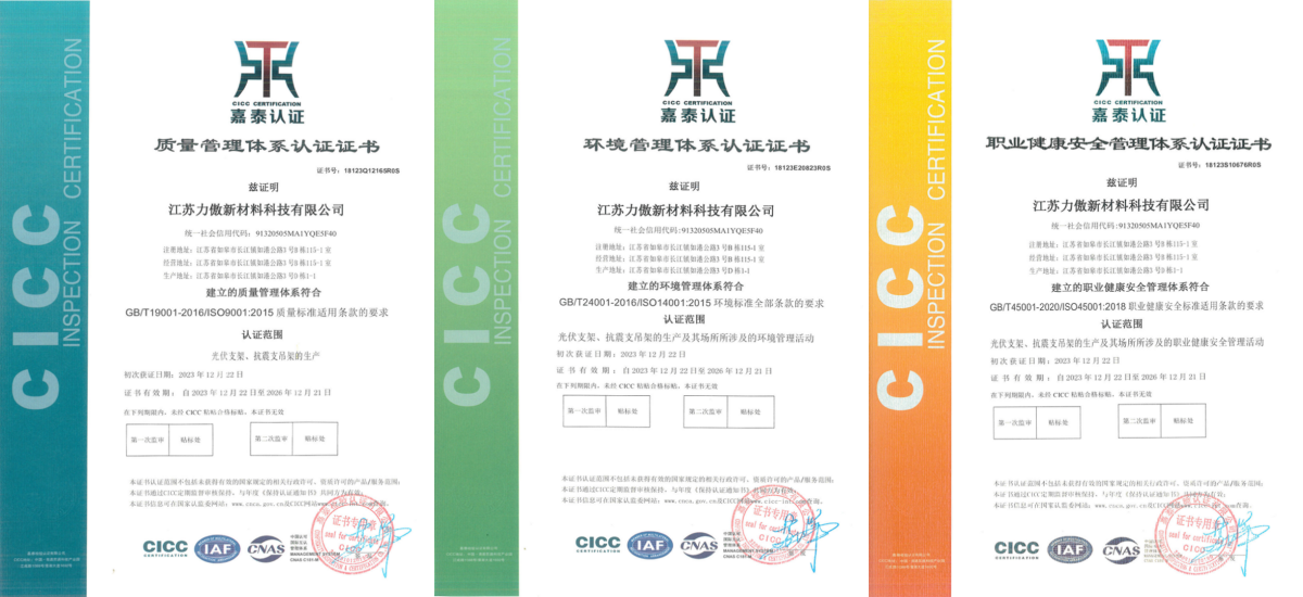 ??江蘇力傲新材料科技有限公司,是一家從事光伏支架、抗震支架產品技術研發,生產制造,銷售運營生產型公司。公司十八年專注支架產品, 經驗恒久。獲得 “高新技術企業”、“江蘇科技型中小企業”、“江蘇省民營科技企業”,“3A重合同守信用企業”。每年為上百家工程提供性價比高的 成品支架、 抗震支架等支架產品。得到市場客戶一致好評,并獲得多家國央企,上市企業作為可依賴,可信任和很有潛力的供應商推介給市場客戶。